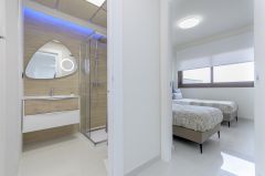 La zona de la piscina y el balcón le ofrecen una agradable sensación de vacaciones. En un piso nuevo y tranquilo con ducha de cascada y cama grande con vistas directas al jardín.